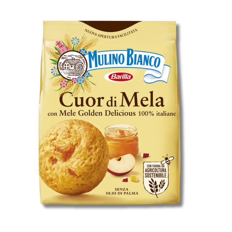 Mulino Bianco Cuor di Mela to włoskie ciasteczka z prawdziwym jabłkowym nadzieniem, przypominającym miniaturowe ciasto. Kruche, delikatnie maślane ciasto powstaje według receptury mistrzów Mulino Bianco, tworzonej od lat 70. Aby osiągnąć tak autentyczny smak, Barilla zbudowała nawet prawdziwy wiejski dom – Cascina Mulino Bianco, w którym narodziły się ich legendarne przepisy.